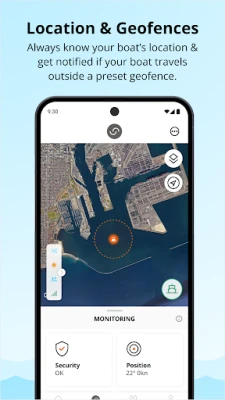 • Track: Always know your boat’s exact location and get notified if your boat travels outside a preset security geofence. Create additional polygon geofences to help make sure you don't go into certain areas