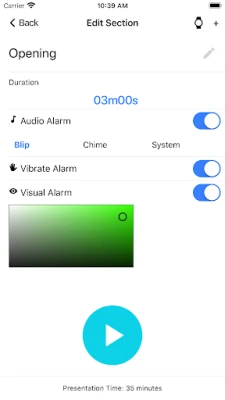 ⏱ Tactile (Phone and/or iWatch vibrates with each alarm) - Discretely notifies you when each section or story should be wrapping up.