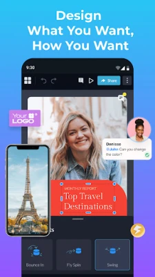 - Create animated or static social media content such as posts, stories, headers, ads, reels, videos, GIFs, and more.